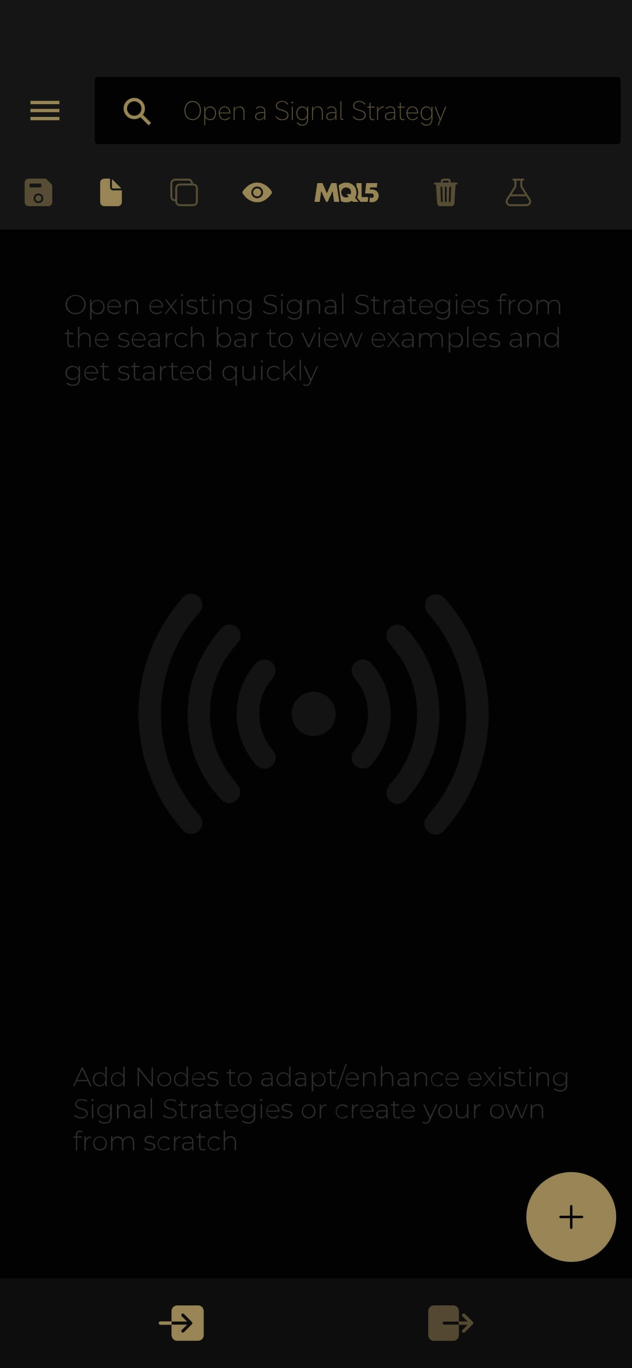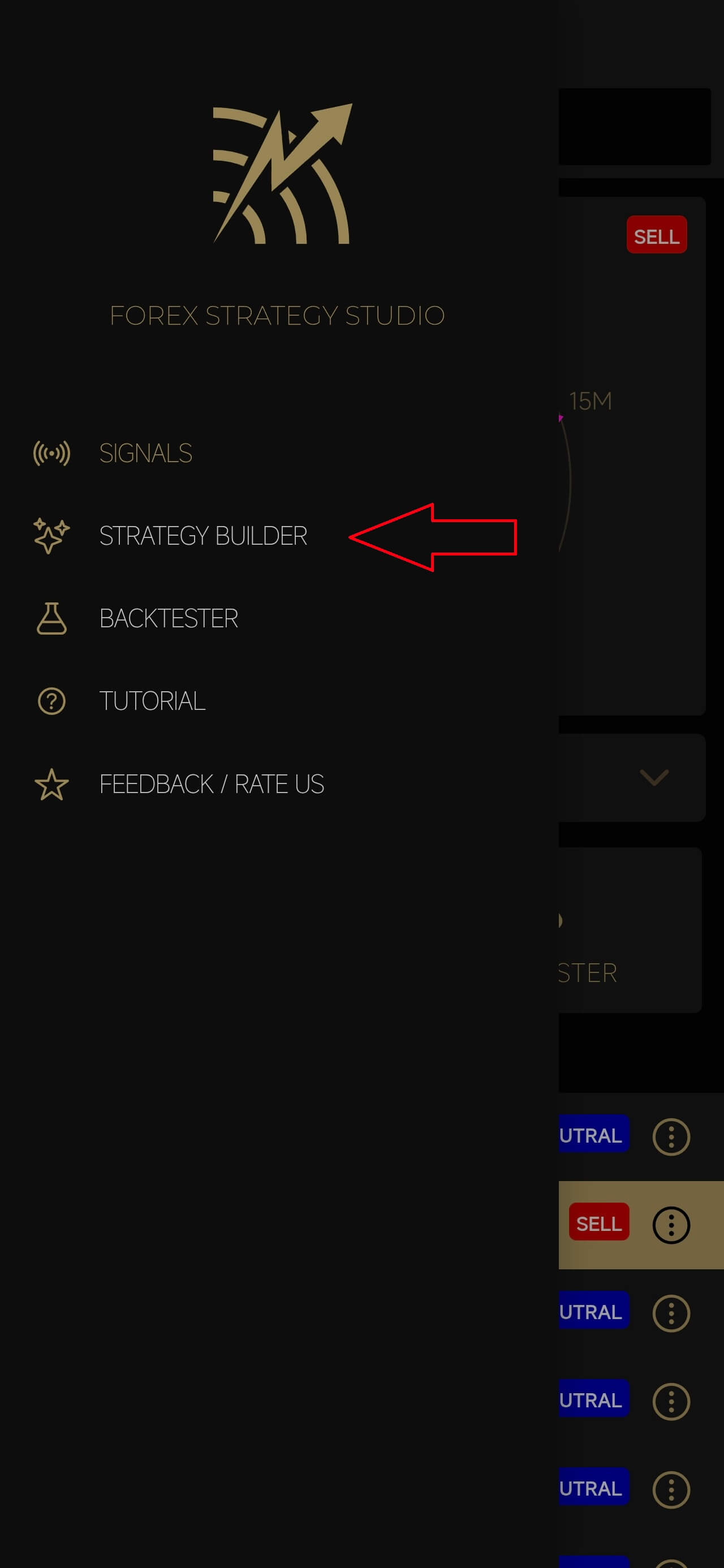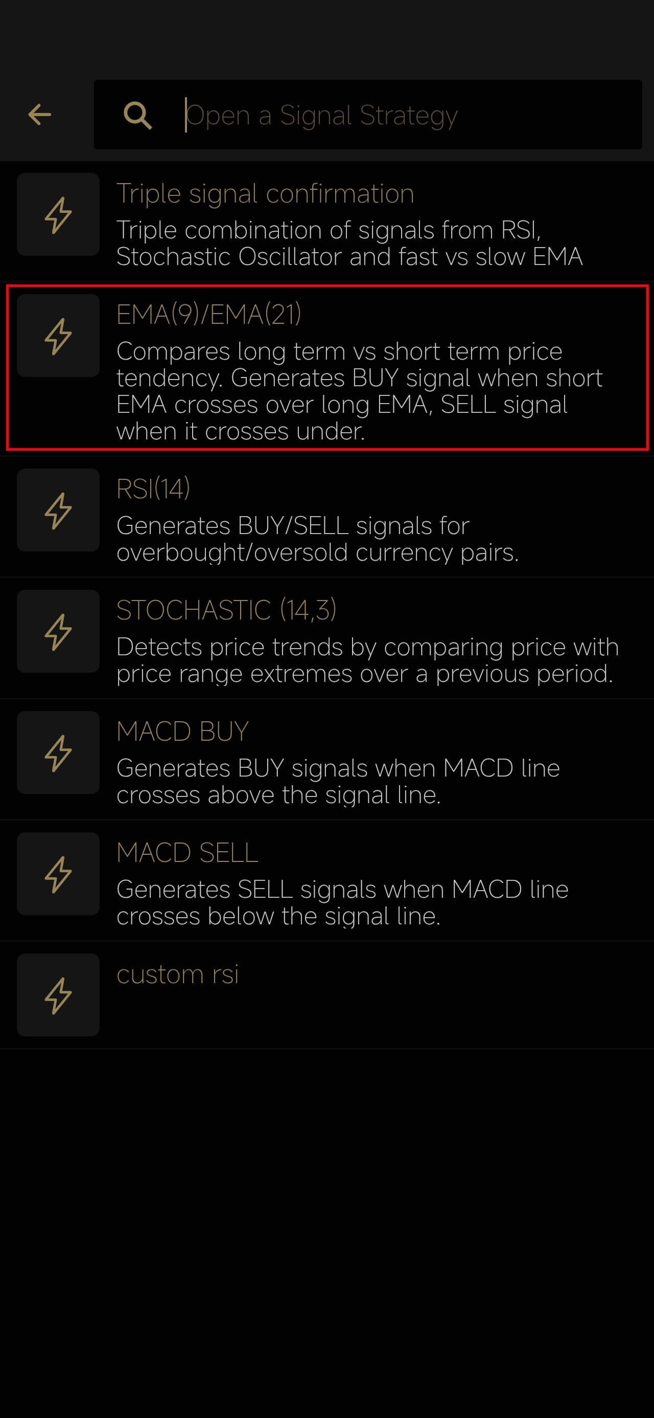 - Open the strategy selector menu, and Open a strategy you want to export to MetaTrader