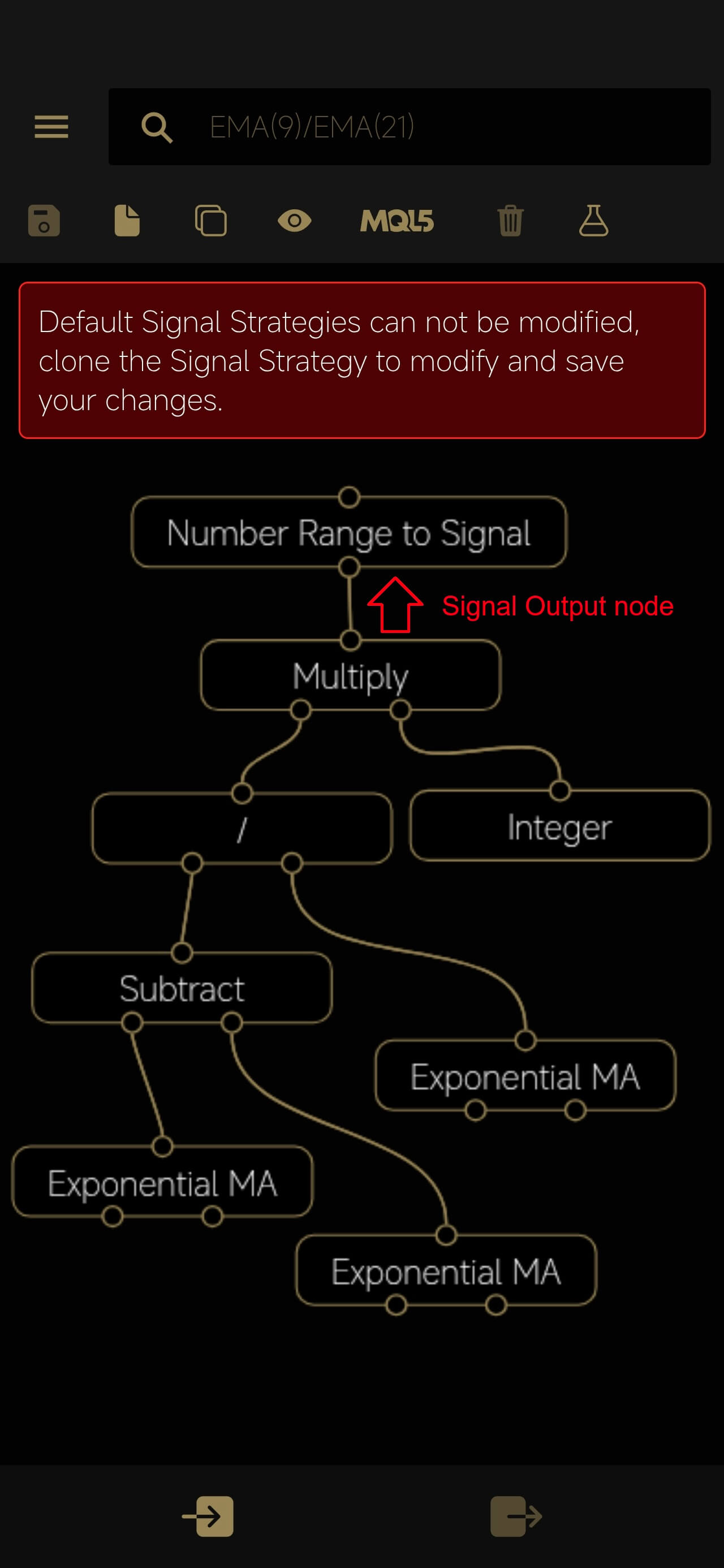 The Strategy should have one Signal generator node (a node which generates a Signal output), and no infinite loops.